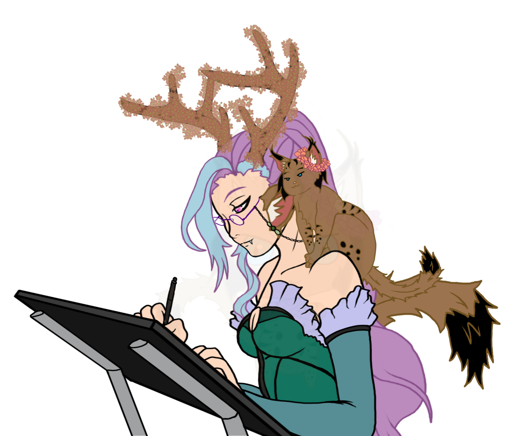 I'm a digital artist with the makings of being a writer. I've written a finished book I plan to publish, with another in the works. Most of my works are fantasy based, including my stories (which are fantasy/romance).